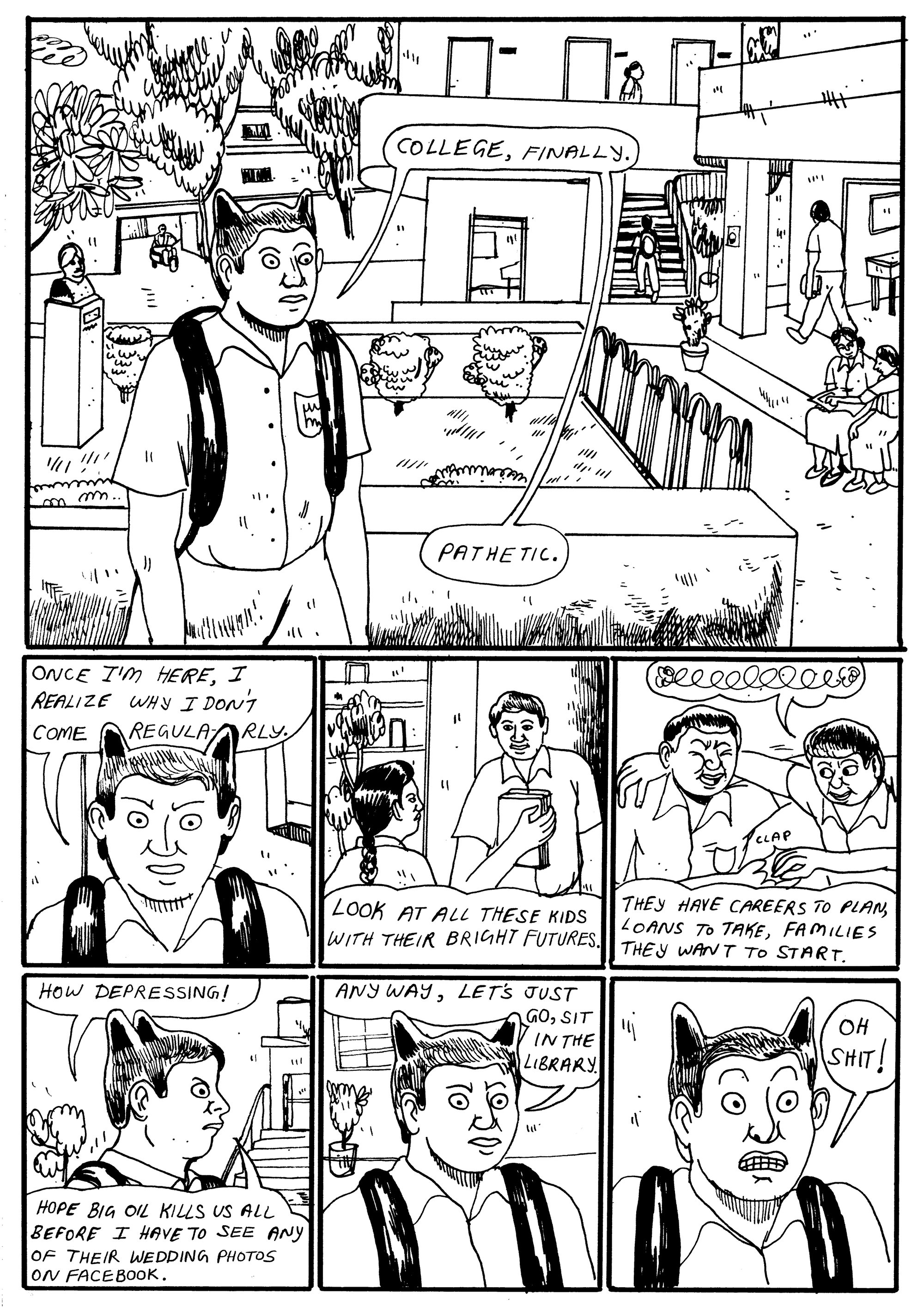 The fifth issue of Zoo, a one-person comic anthology by Anand, is here! This issue contains three stories, ‘Notty Sis-in-Law: A Four Ears Story’, ‘Vulture’ and ‘One Foot in the Grave’. Stories about guilt, plagiarism, a parallel history of Indian alternative comics, grief, and going to watch p*rnography in the theatres.